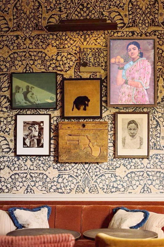 A beautiful vintage embroidered cloth litho print of a painting made by Raja Ravi Verma. Curated for The Ayush Kejriwal Art Project.