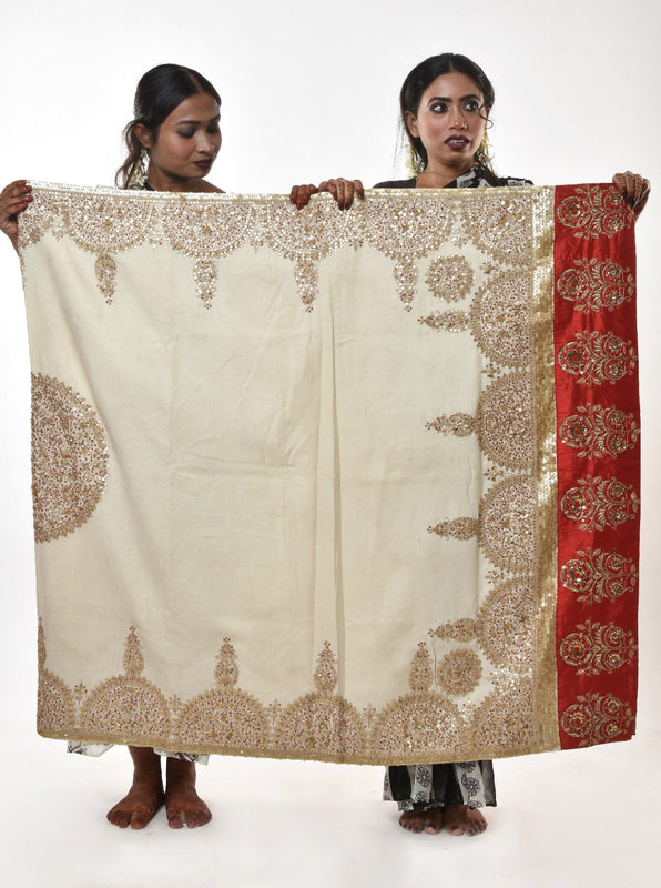 You can style it as a dupatta with a Gherdar/kurta or with a saree to create a unique look.