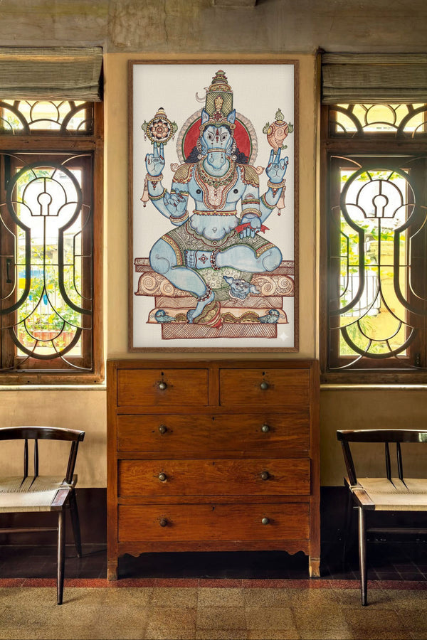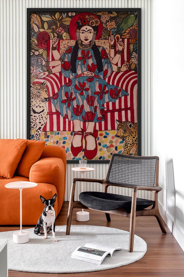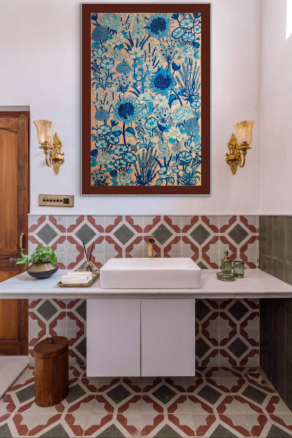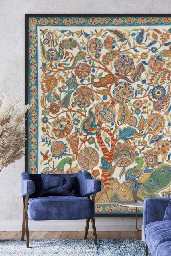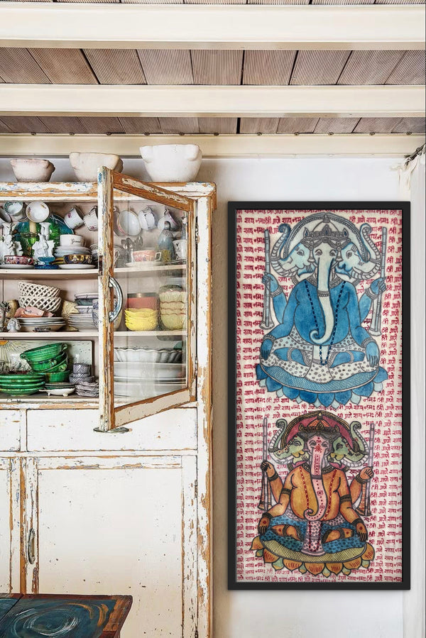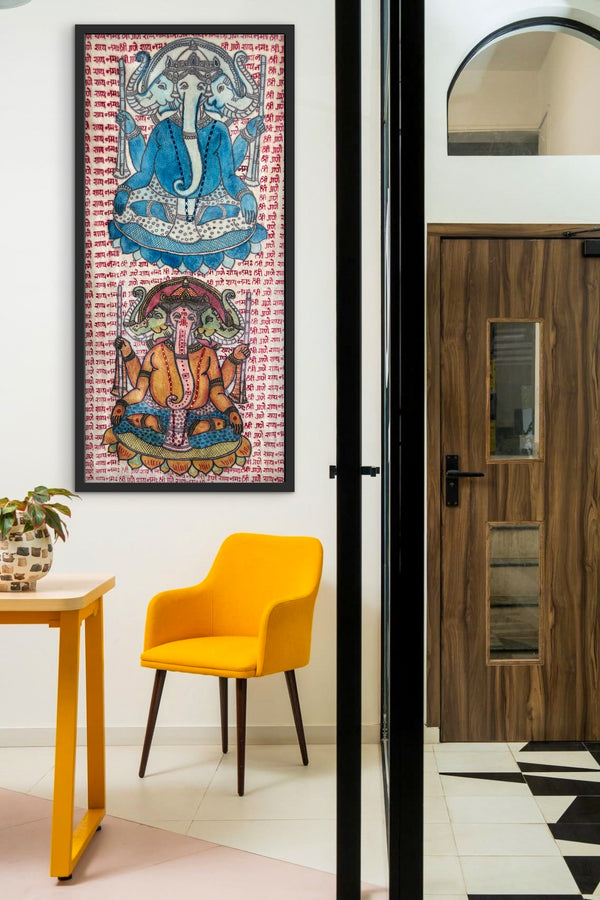 A collection of handmade artworks and objects including beautiful paintings, upholstery and objects made very lovingly by some amazing master artists for The Ayush Kejriwal Art Project.