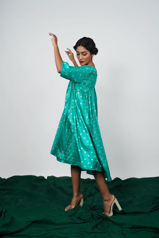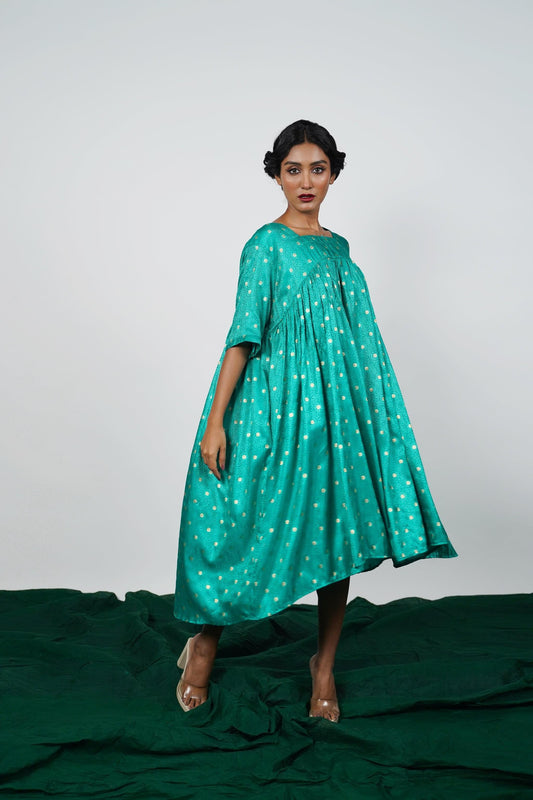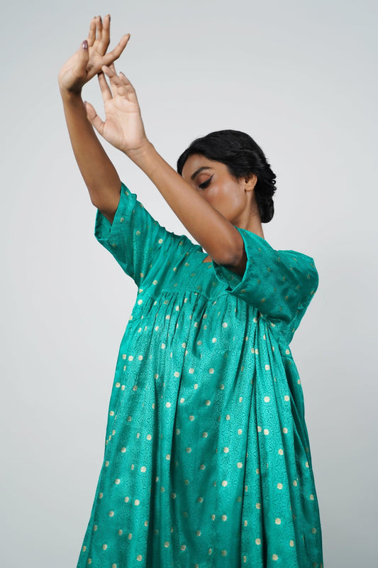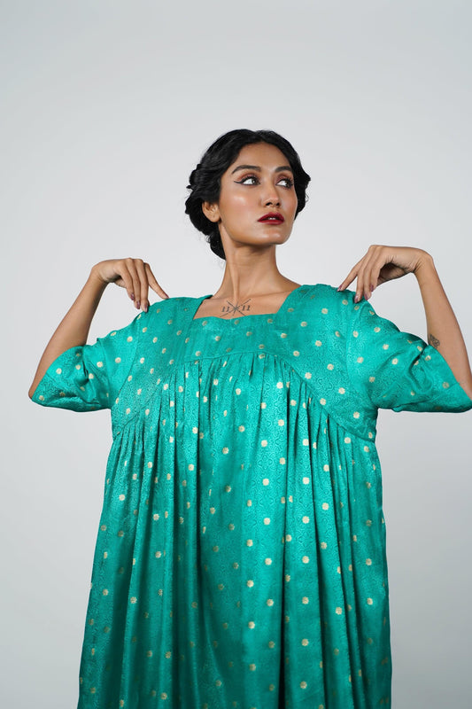 A unique one-piece dress made from Banarsi Silk. Free Size (This Size fits most).