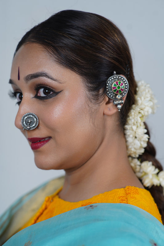 A tribal Handcrafted statement silver cuff earring. This is known as Bugudi in Rajasthan.