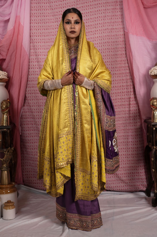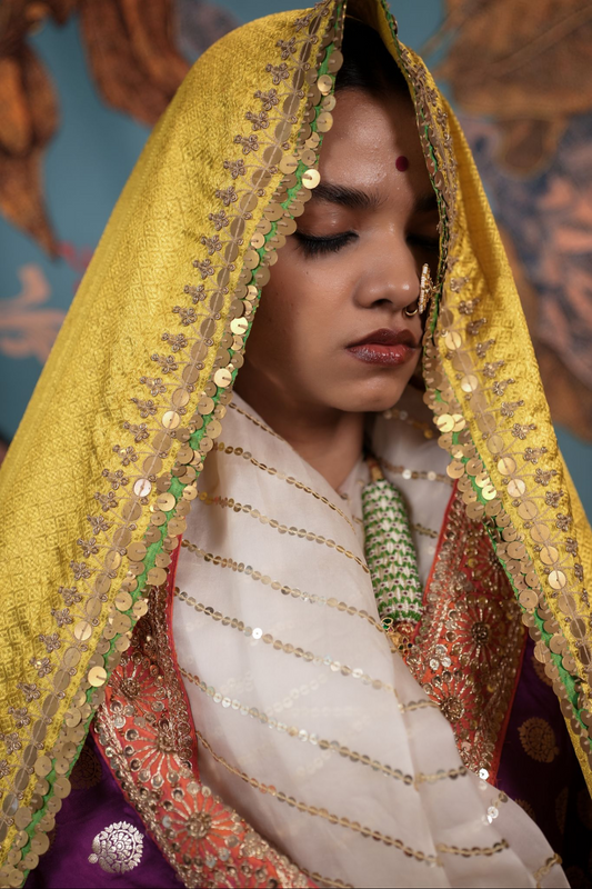 Style it with statement earrings and perhaps a big watch and some kadas. Can be styled with suits and sarees. It can also be used as a head veil with lenghas and skirts.