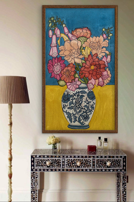 A beautiful hand painted real pen kalamkari wall painting, made by skilled artists from India for The Ayush Kejriwal Art Project.