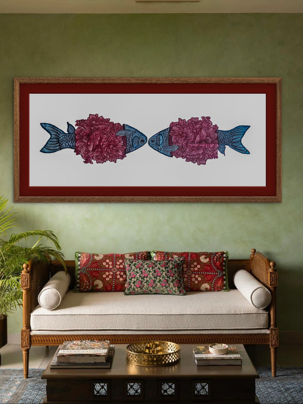 A beautiful hand painted real pen kalamkari wall painting made by skilled artists from India for The Ayush Kejriwal Art Project.