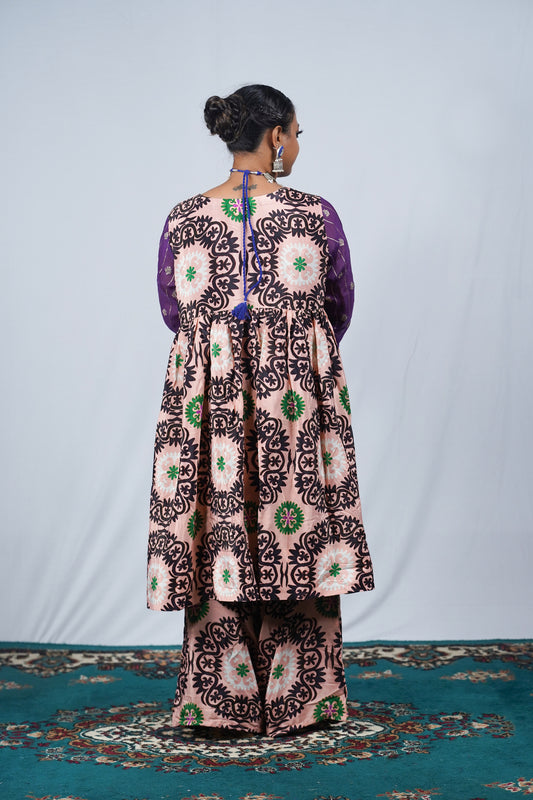 Care for this This kurta and pant set by storing it in muslin cloth and keep it away from direct sunlight. Open the piece and air it every few months. Dry Clean only.