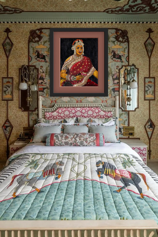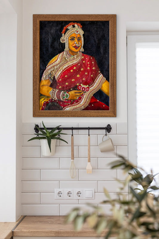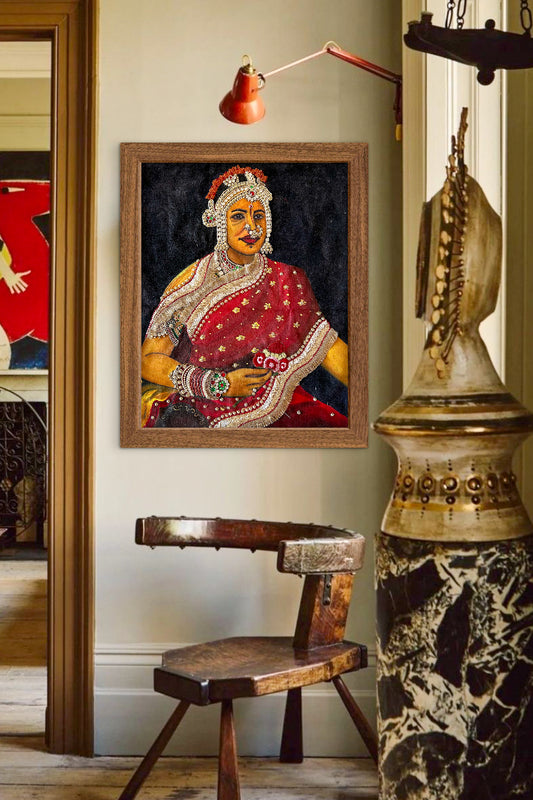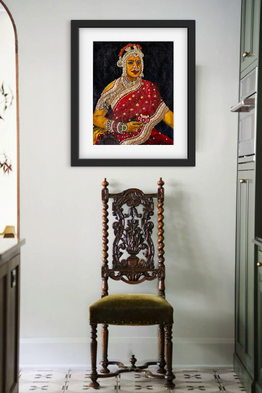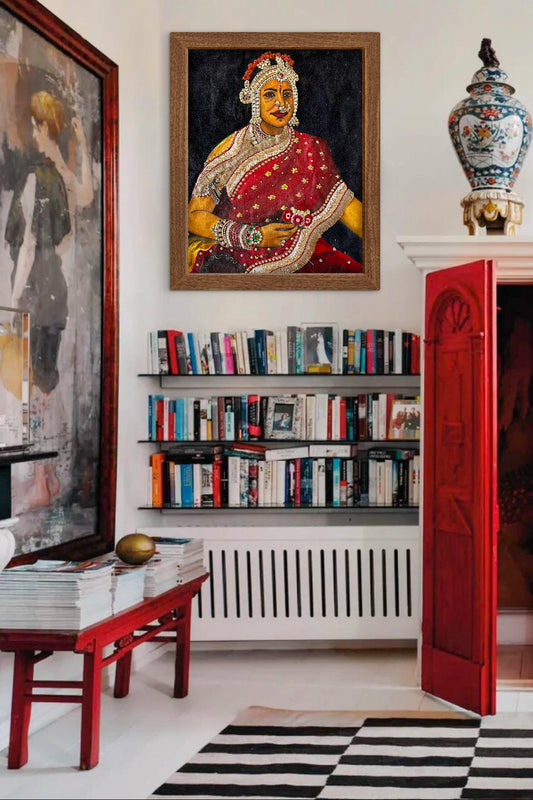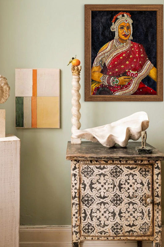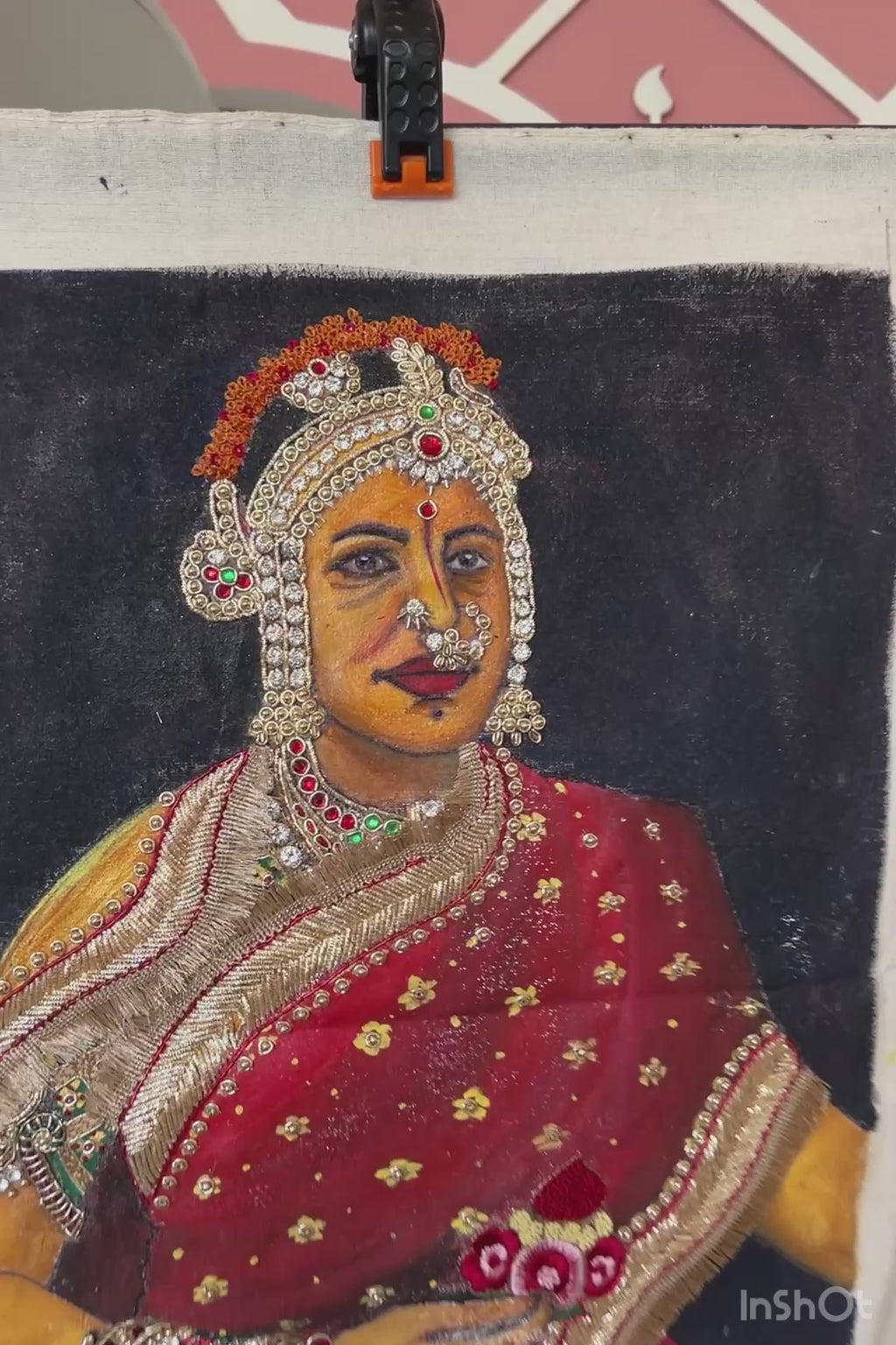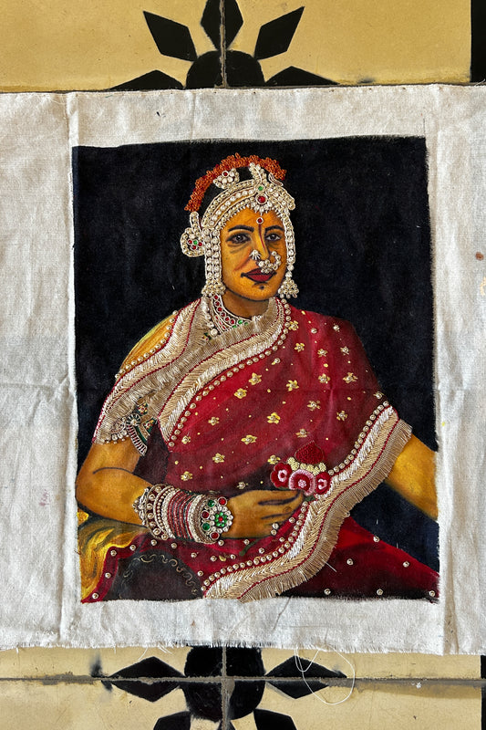 A stunning hand painted artwork which had meticulously hand embroidered by master artists for The Ayush Kejriwal Art Project.