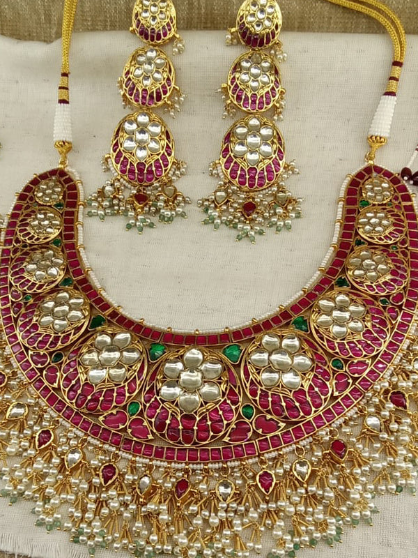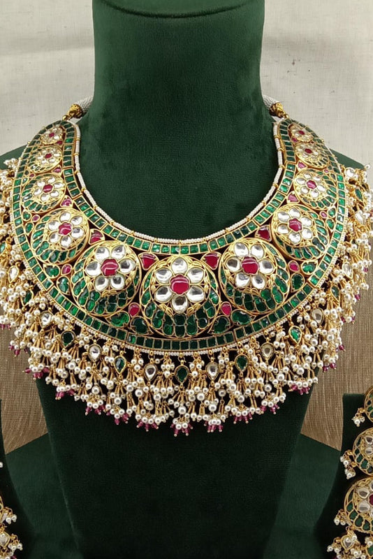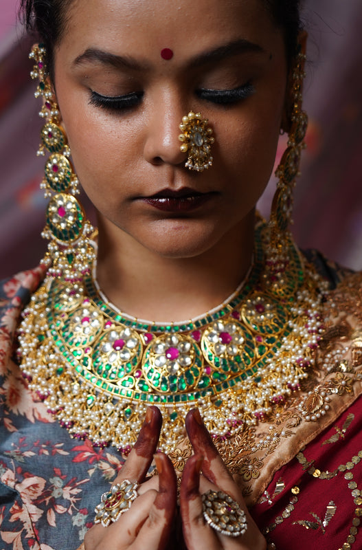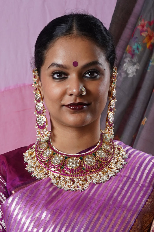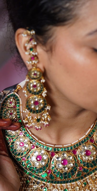 A beautiful handcrafted jewellery set (neckpiece, earring and tikka).