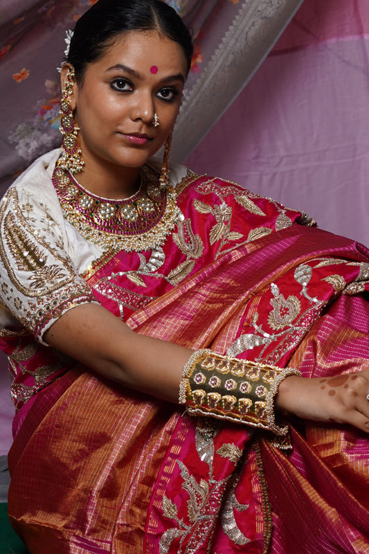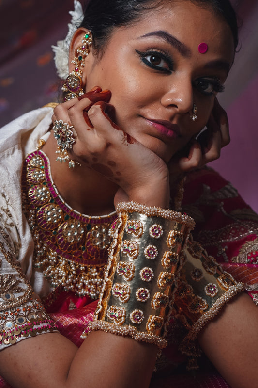 Team this up with your plain georgette or silk sarees or even heavy embroidered pieces to give it a bit of lift. A big bindi and some flowers in the hair works a treat.