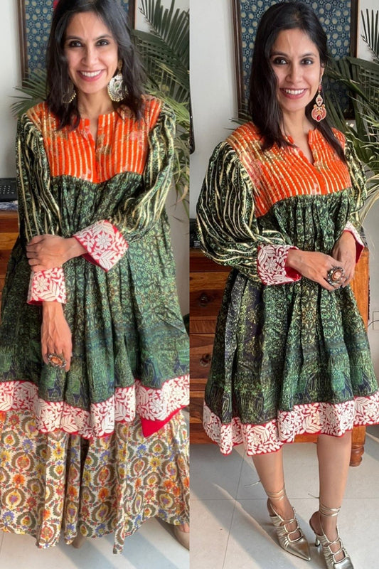 I work with over 46 families and together we make beautiful clothes and jewelry. We do not produce in bulk and only 1-3 pieces are made of each design. Every purchase you make has a direct impact on all of us and helps us in keeping the wonderful crafts of India alive.