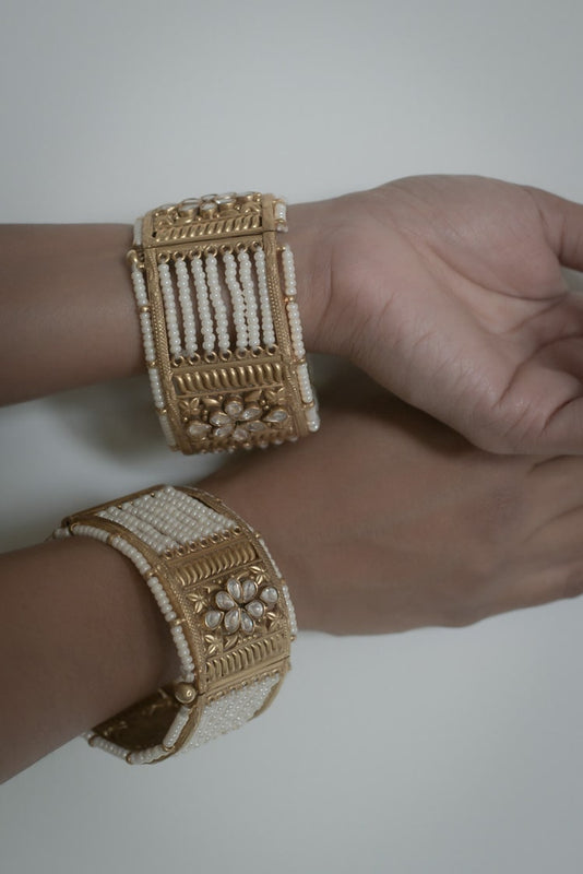 A handmade openable kundan silver bangle set (2 pcs) with a screw top opening, One size fits all (2.5 inches).