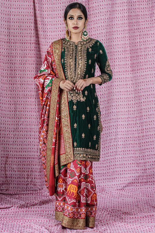 Care for this beautiful piece by storing it in muslin cloth and keep it away from direct sunlight. Open the piece and air it every few months. Dry Clean only.