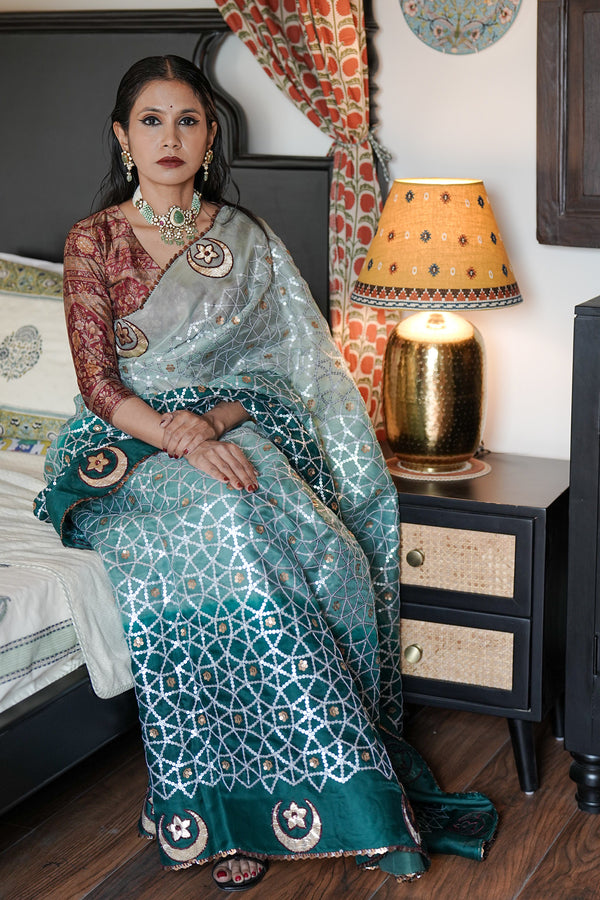 $1,264.00Shaugat Hand Painted Pen Kalamkari Saree