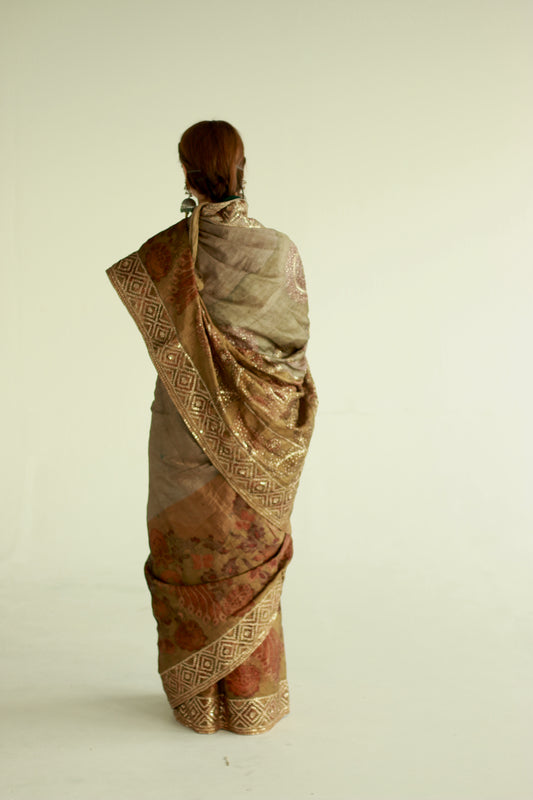 Mehroonbai Hand Painted Pen Kalamkari Saree