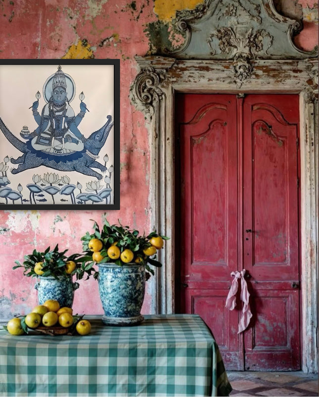 A beautiful hand painted real pen kalamkari wall painting, made by skilled artists from India for The Ayush Kejriwal Art Project.