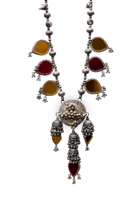 A beautiful long statement neckpiece made in silver. Neckpiece