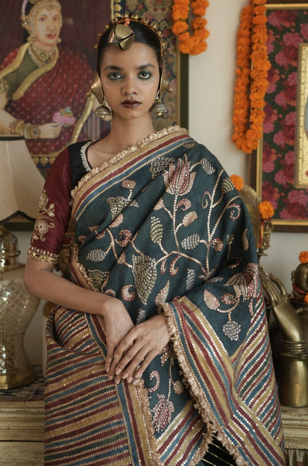 Sold outTarana Hand Painted Pen Kalamkari Saree
