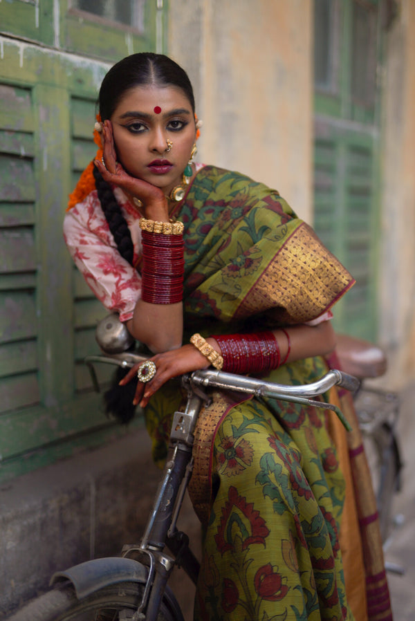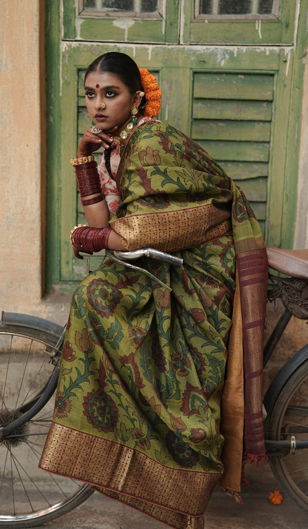 Jamunbi Hand Painted Pen Kalamkari Saree